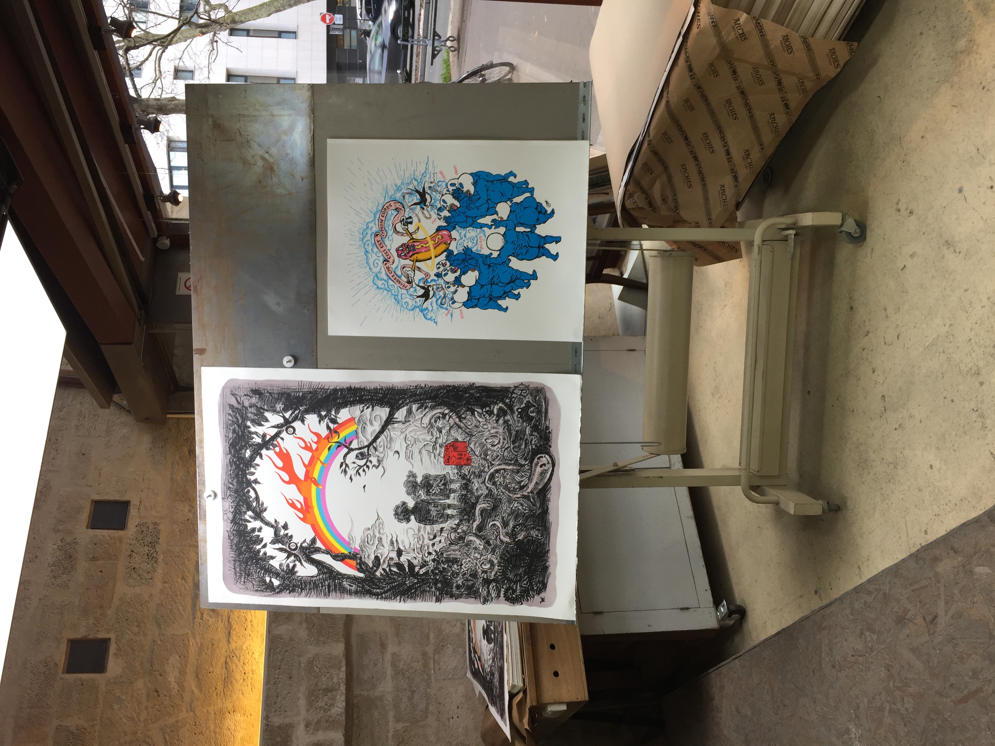 Impression de la lithographie Ceci est Mon Corps à l'atelier parisien de Stéphane Guilbaud