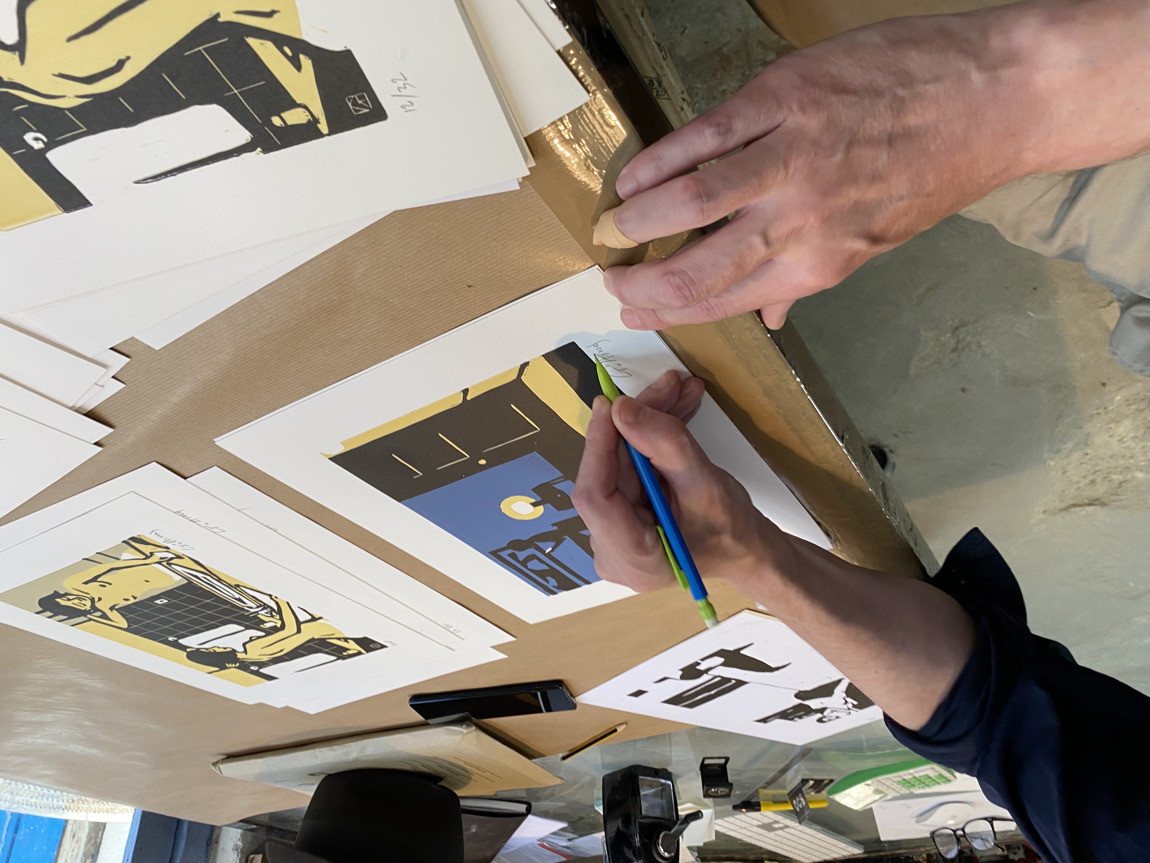 Chaque linogravure signée et numérotée au crayon par l'artiste