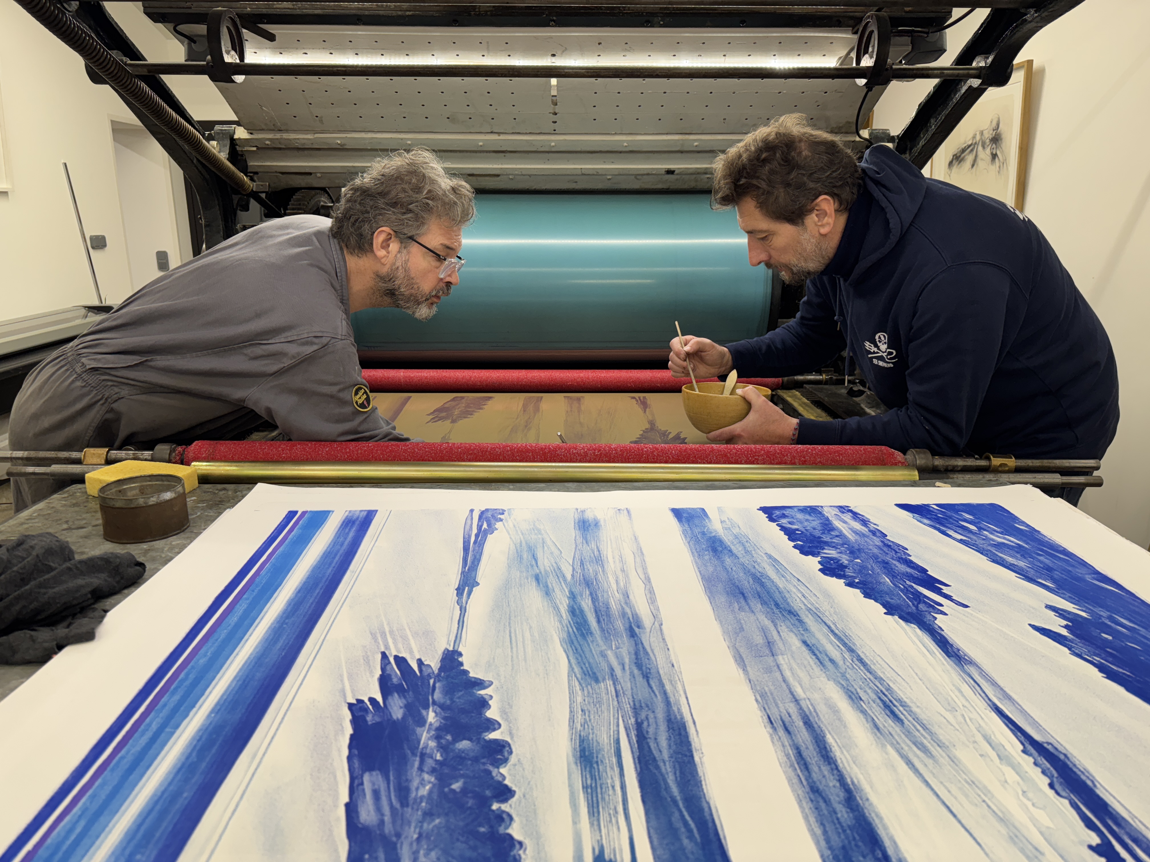 Imprimé sur les presses de l'atelier Stéphane Guilbaud & Deborah Chaney et rehaussé par l'artiste à La Force