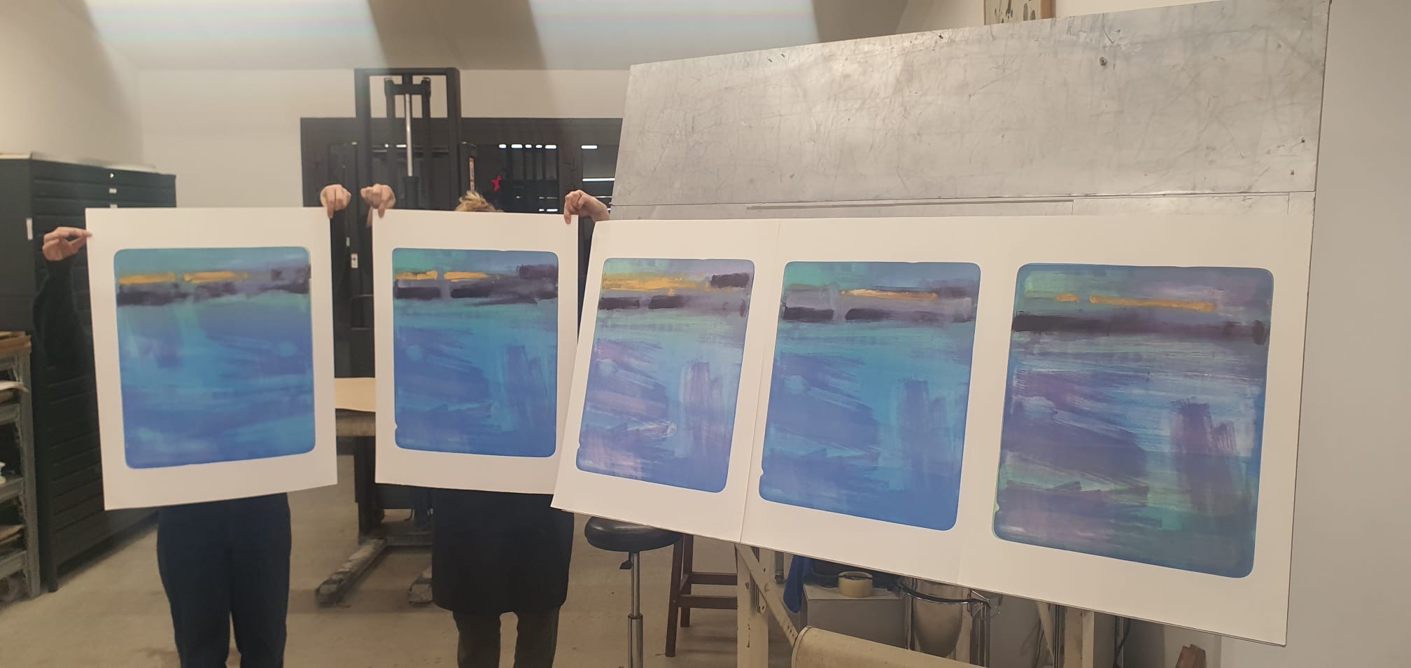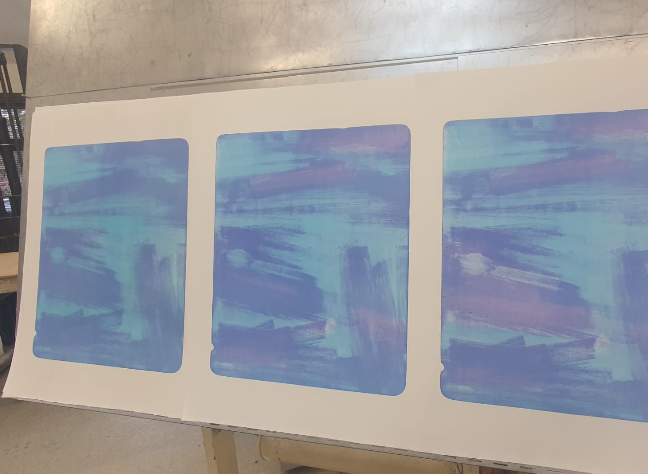 Monotype original en couleurs sur fond d'impression en lithographie 3 couleurs, sur papier BFK Rives 300 grammesTirage à 46 exemplaire, chaque épreuve unique