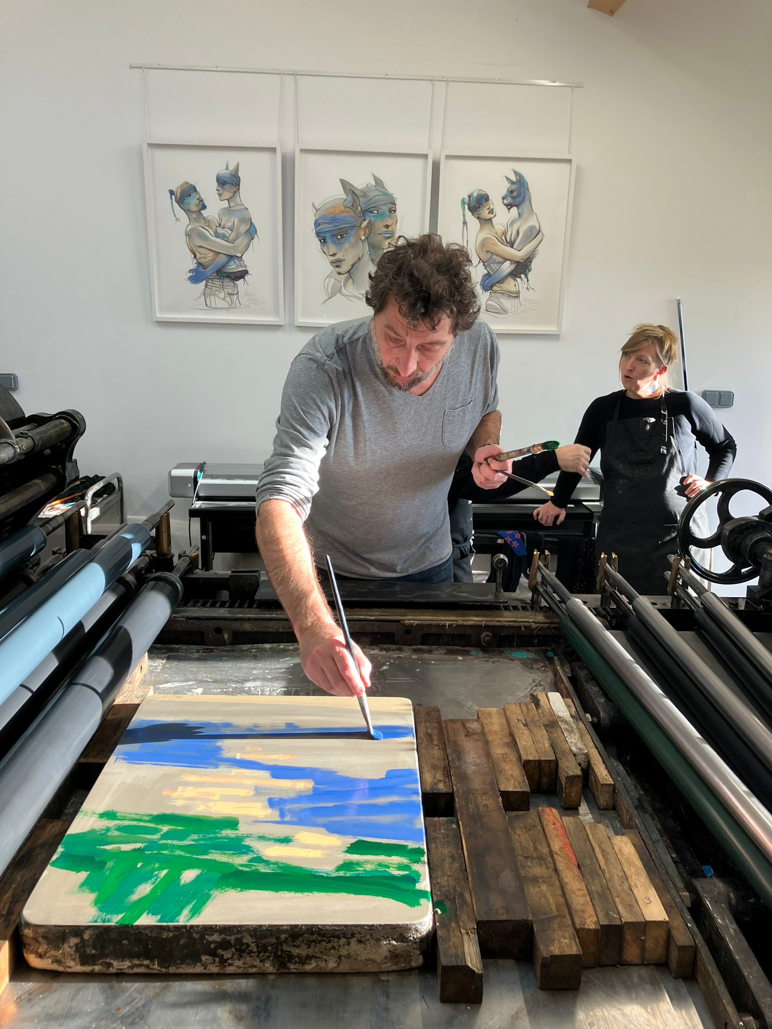 Imprimé sur les presses de l'atelier Stéphane Guilbaud & Deborah Chaney et rehaussé par l'artiste à La Force